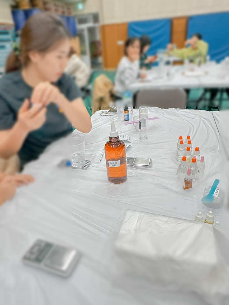 화장품만들기, 수분크림, 미스트, 페이셜 오일등등다양하게 만들어가셨답니다.